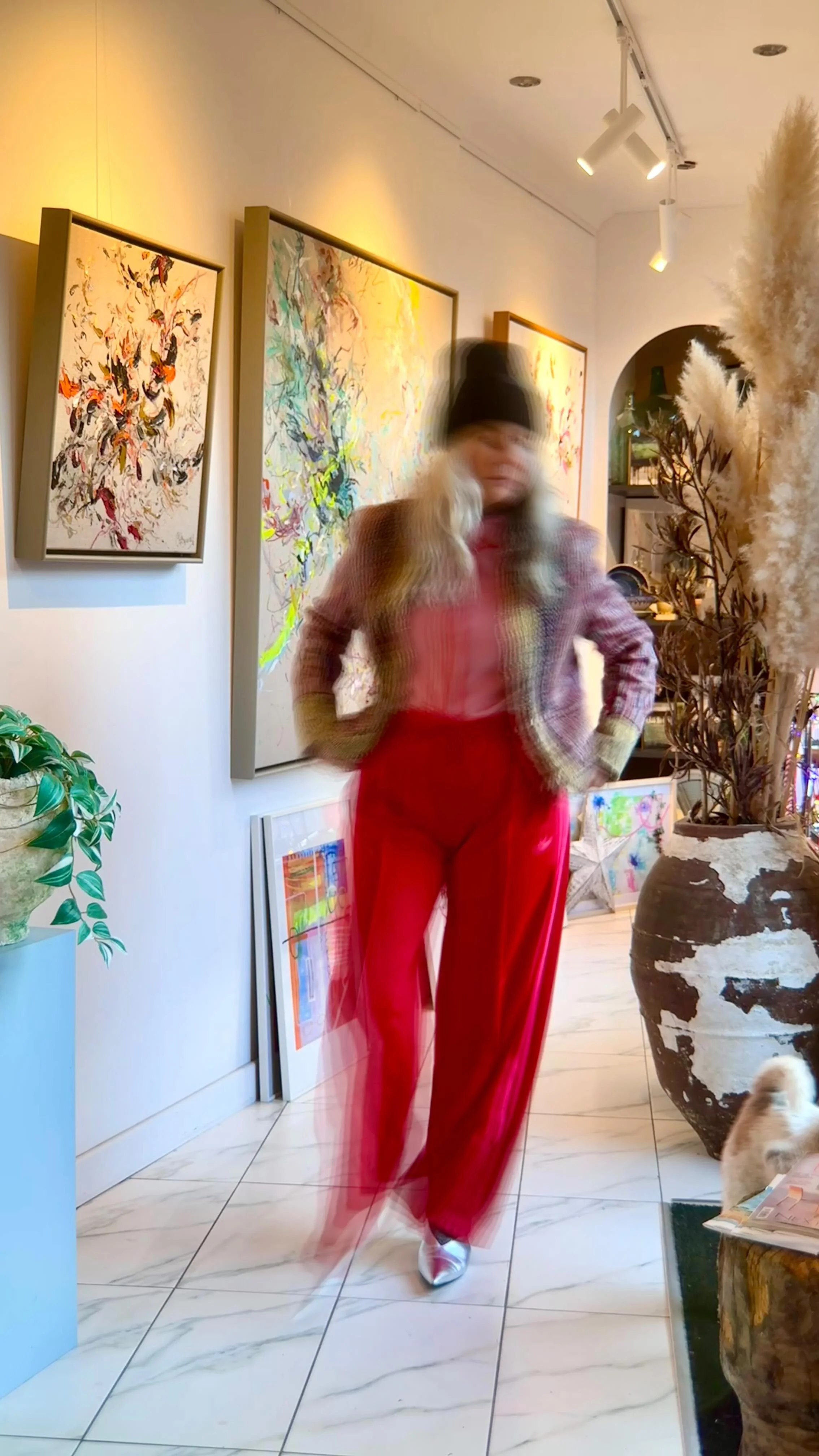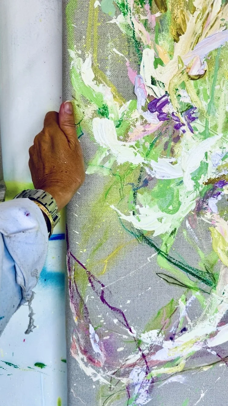 When I create, I work primarily with acrylics, but I also love to incorporate inks, charcoal, oil sticks, and pastels to bring texture, depth, and intricate details to each painting. My process is expressive, playful and energetic, almost like a dance—moving fluidly across the large canvas, I let intuition guide my hand.