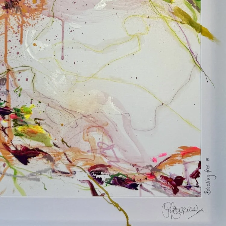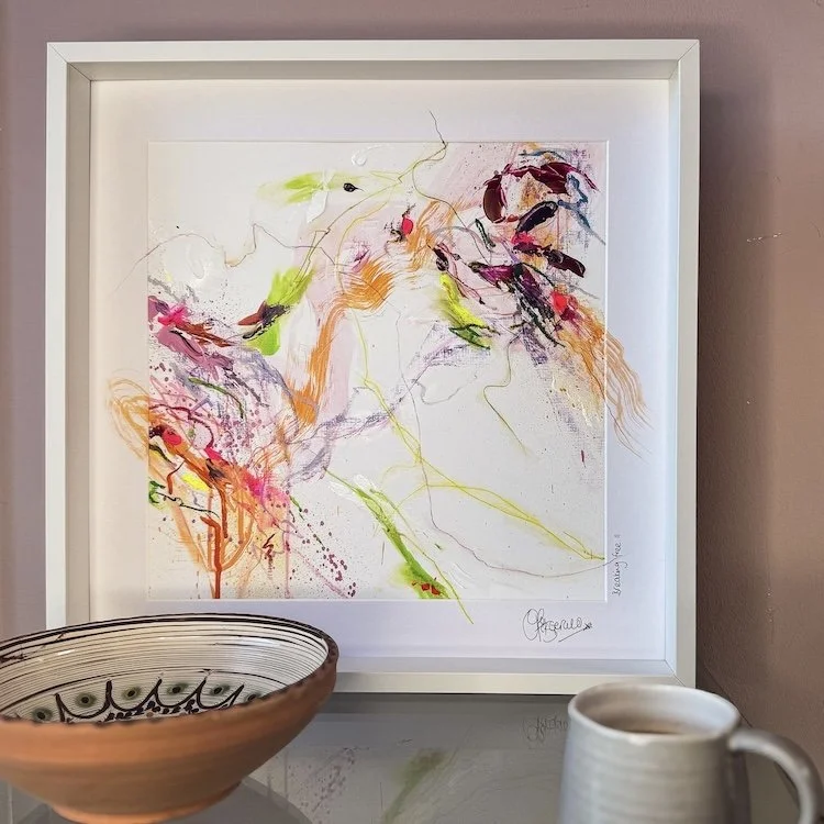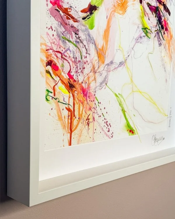 Discover my collection of smaller “Works On Paper’ — unique, one-of-a-kind originals created with the same passion, energy, and high-quality materials as my larger pieces. Framed and ready to hang, these artworks are designed to ‘make your walls dance’. offering an accessible way to bring vibrant, original art into your home.